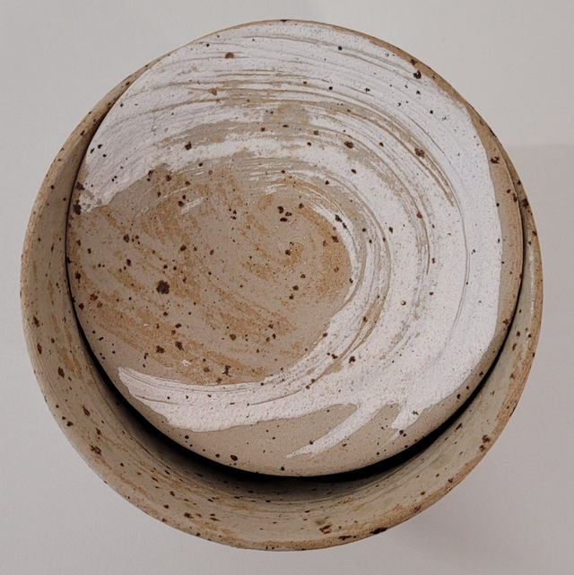 - Intérieur émaillé de cendre de bois, lisse, satiné, nuances crème avec pyrites rouilles,